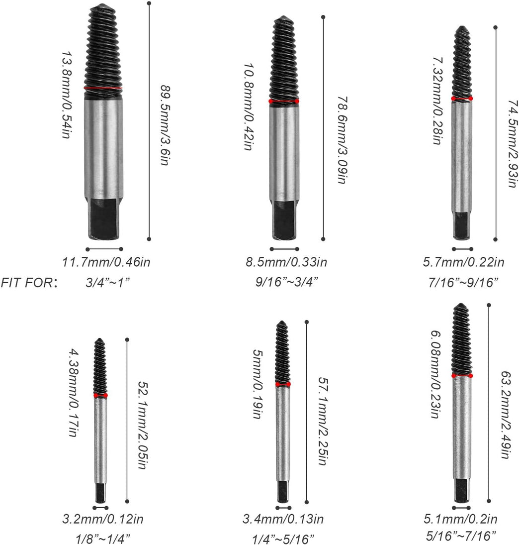 Fornitore:EAFC™Estrattore Viti Danneggiate 1/8-1 Pollice, 6 Pezzi Estrattori Viti Danneggiate, Estrattore Viti Spanate, per Viti Danneggiate, Tubi